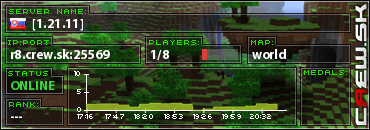 | IP: | r8.crew.sk:25569 | Mapa: | world | Verzia: | Paper Spigot 1.21.11 | Vek servera: | 0 dní |